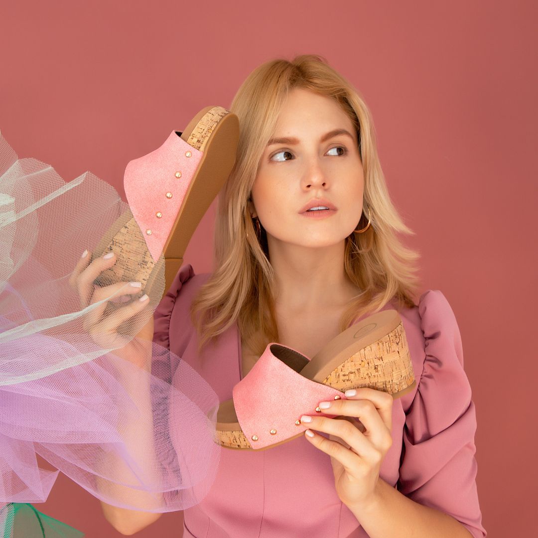 Lightweight cork wedge with metallic stud accents