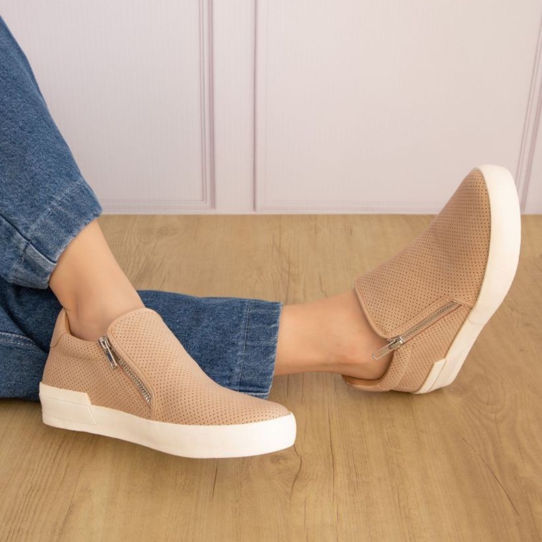 - Slip-on sneakers with round toe and slider on the side for greater comfort.